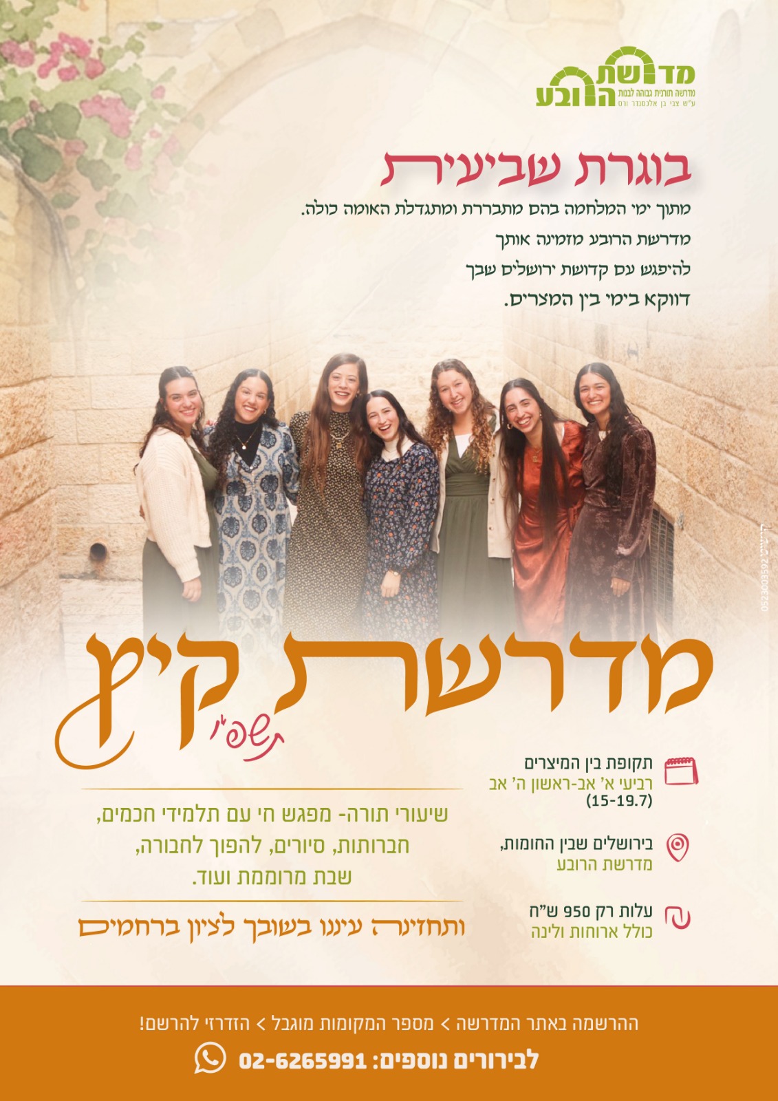 חמישה ימים שהם הצצה לעולמה של בת מדרשה שנועדו- ללמוד, לברר, לשאול, להיענות, להעמיק ולקבל זריקת מרץ להמשך הדרך של כל אחת ואחת.