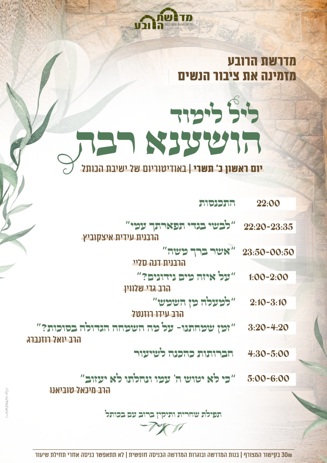 בנות המדרשה ובוגרות: הכניסה חופשית.
